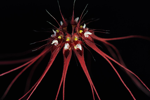 This orchid is one of the few in our range which gave rise to two essences, related yet quite distinct in their actions. Base Regulator was made when the sexual parts of the blooms (the white & yellow elements seen in the photos) were still concealed within the dark red forms of the petals. Core Release was made some 18 hours later in the bloom cycle.